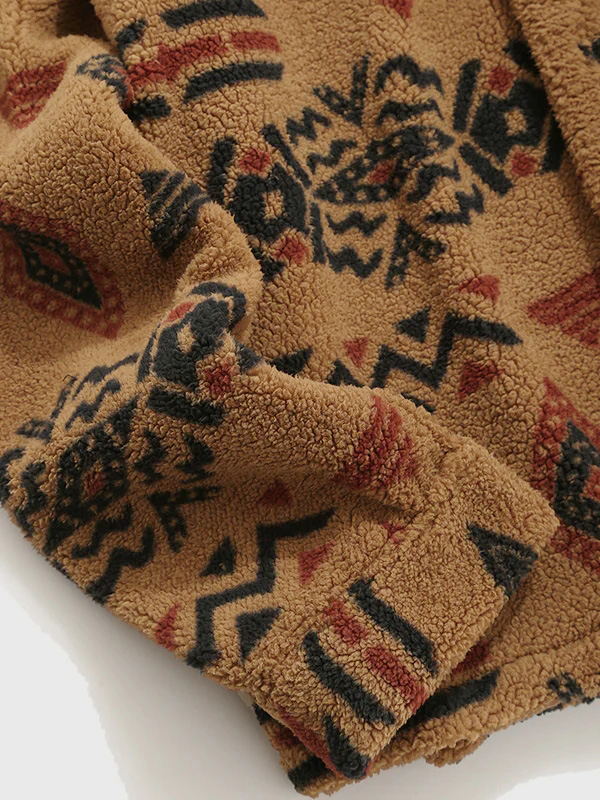 Alec - retro-fleecejacke mit aufschlägen im ethno-Stil