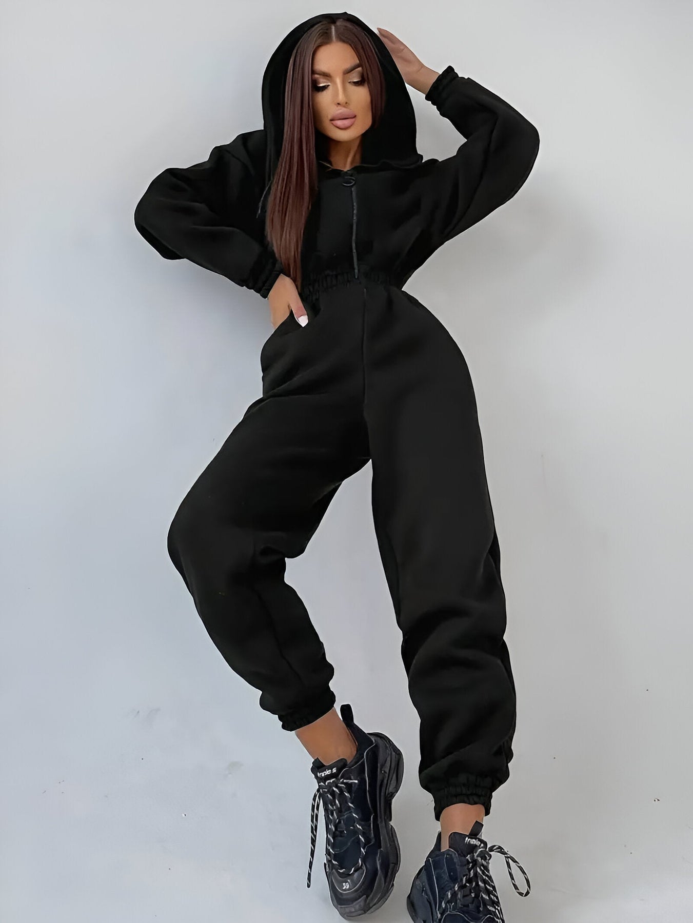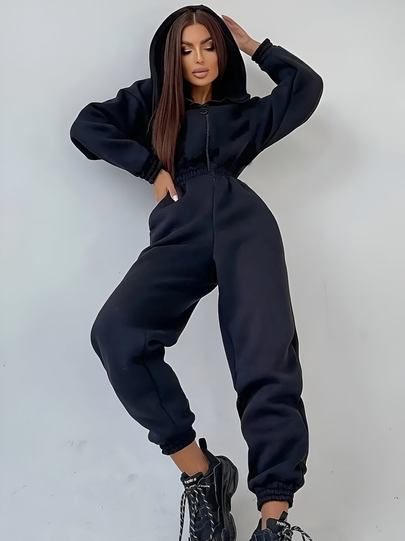 Stell dir vor, du schlüpfst in einen Jumpsuit, der Komfort mit einem Hauch von Chic verbindet. Perfekt für die frischen Frühlingstage oder die kühleren Herbstabende, ist dieses vielseitige Teil dein perfekter Begleiter für mühelosen Stil und Bequemlichkeit. Mit seiner gemütlichen Kapuze und dem lockeren Schnitt fühlst du dich selbstbewusst und entspannt, egal ob du für einen entspannten Tag unterwegs bist oder Besorgungen machst.