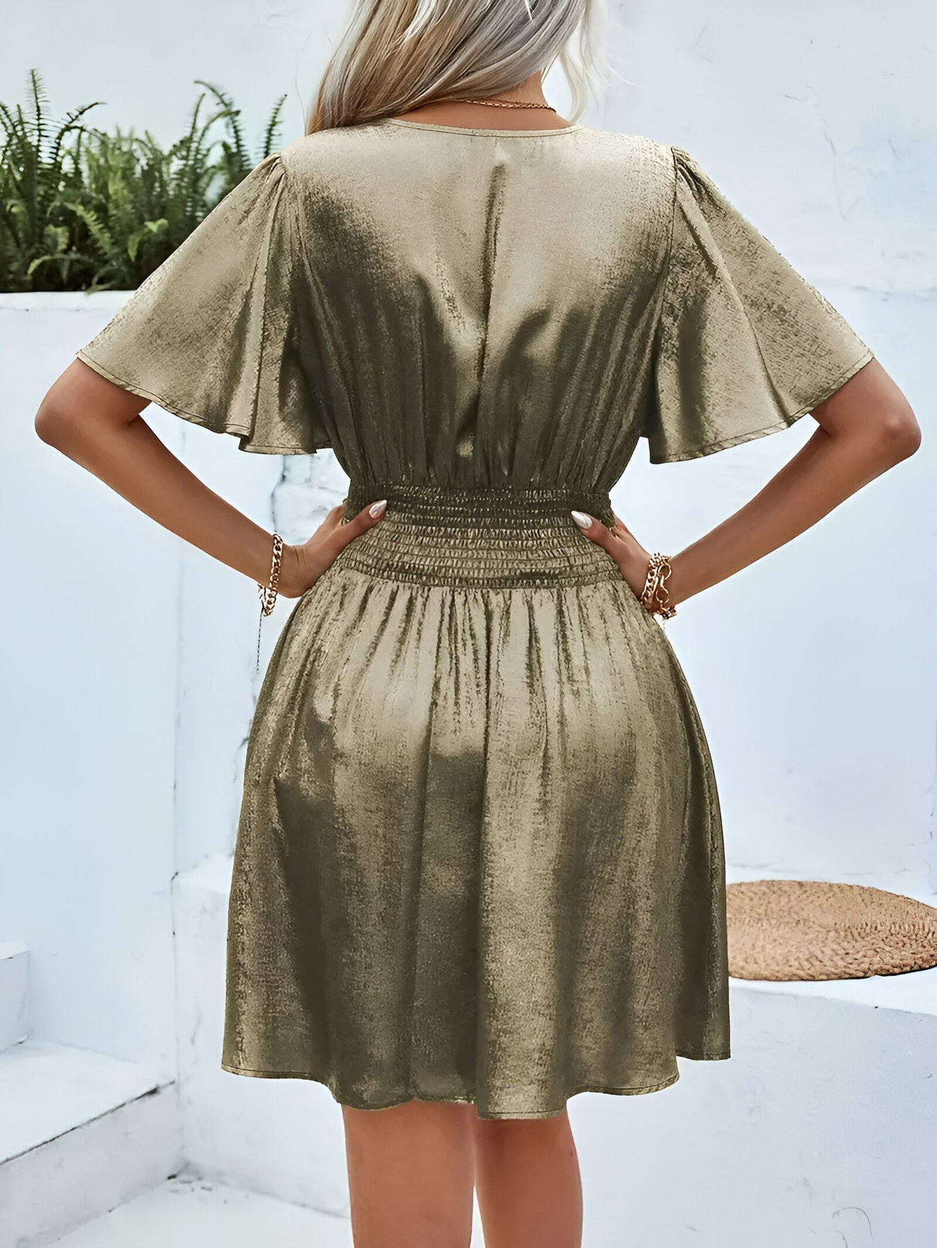 Stell dir vor, du betrittst einen Raum, drehst mit jedem Schritt alle Blicke auf dich und fühlst dich völlig selbstbewusst in einem Kleid, das dazu gemacht wurde, zu schmeicheln und zu fesseln. Dieses Kleid ist die perfekte Balance zwischen zeitloser Eleganz und modernem Flair. Mit seiner zarten, plissierten Taille und den Rüschensäumen wirst du dich immer elegant und bereit für jede Gelegenheit fühlen – ob bei einer Frühjahrsfeier oder einem gemütlichen Herbstabend. Sein vielseitiges Design und die einfarbige Farbe machen es zu einem Kleidungsstück, das du das ganze Jahr über tragen kannst und das deinem Kleiderschrank Raffinesse und Charme verleiht.