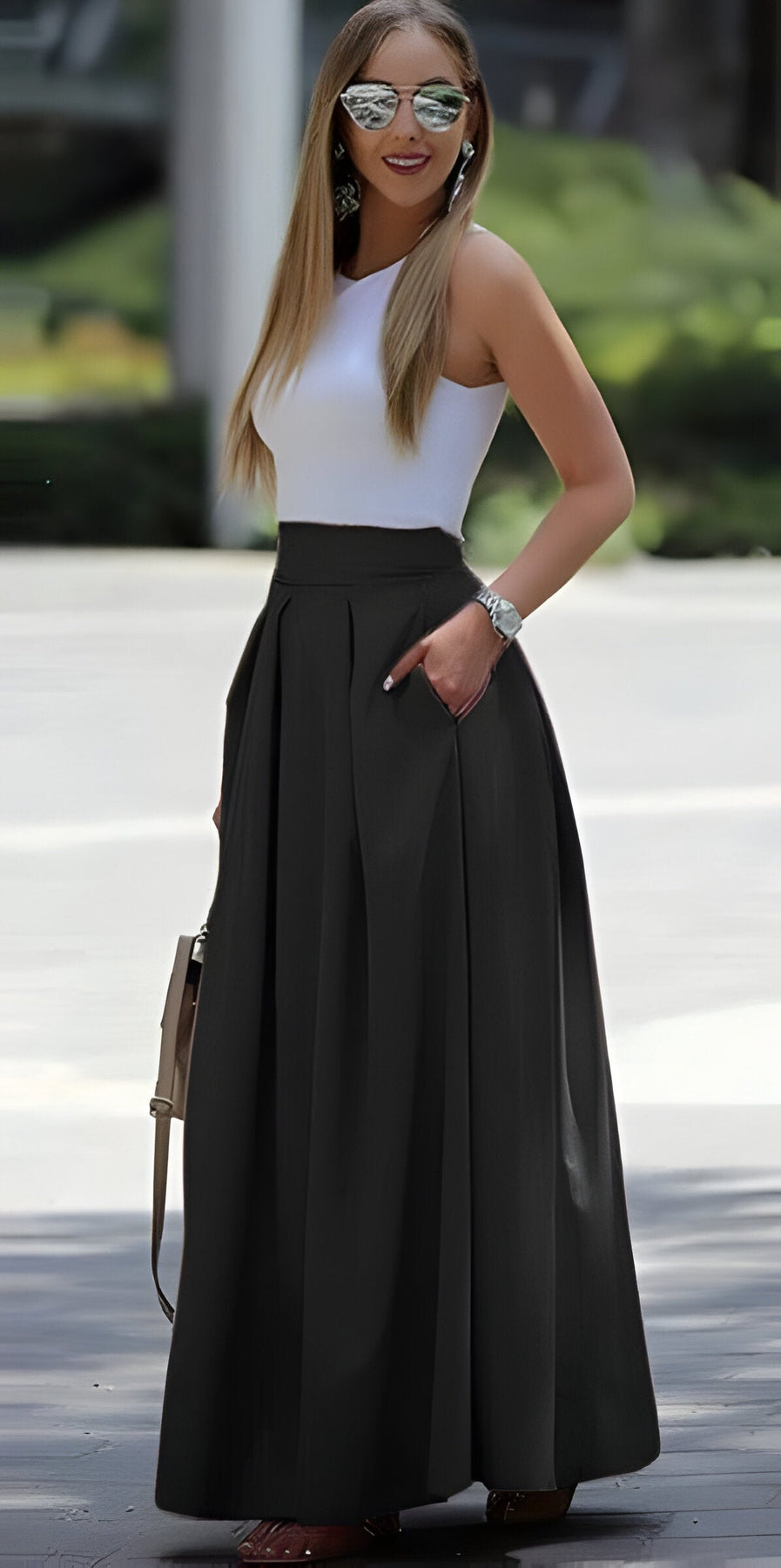 Ein Rock, der immer passt – klassisch, stilvoll und vielseitig. Ob im Büro, beim Dinner oder beim entspannten Stadtbummel, dieser Rock verleiht dir einen eleganten Look, der nie aus der Mode kommt.