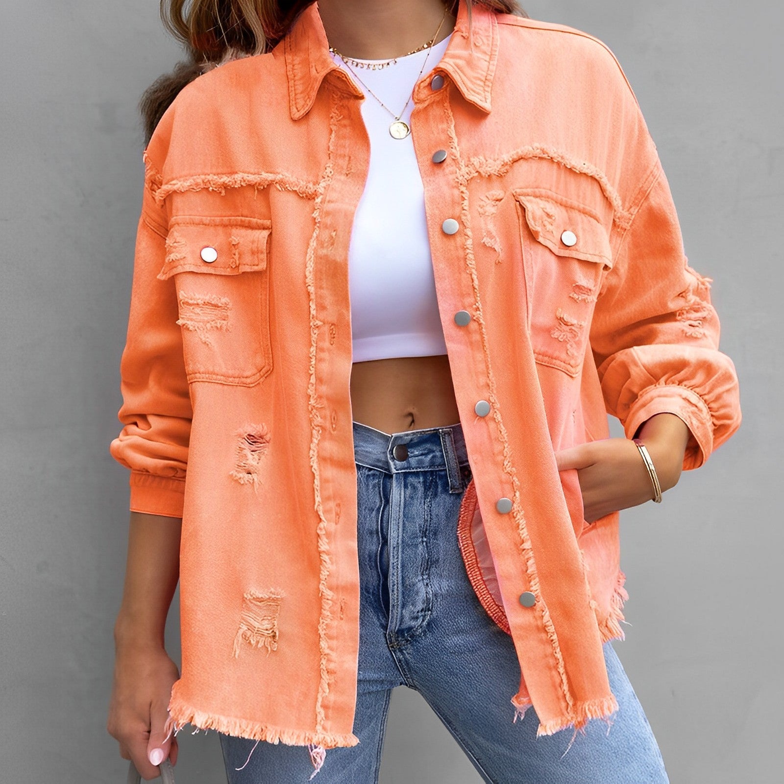 "Chroma" ist nicht einfach nur eine Jeansjacke, sondern ein lebendiger Ausdruck von lässiger Coolness. Mit ihrem modernen Design, das zeitlosen Denim-Charme und ein breites Farbspektrum vereint, verleiht sie Ihrer Garderobe einen verspielten Touch. Die bequeme und strapazierfähige Chroma" ist ideal für den Alltag und verleiht jedem Outfit Energie und Leben. Nutzen Sie die Vielseitigkeit dieser mutigen und ausdrucksstarken Jeansjacke, um Ihren Stil aufzuwerten.