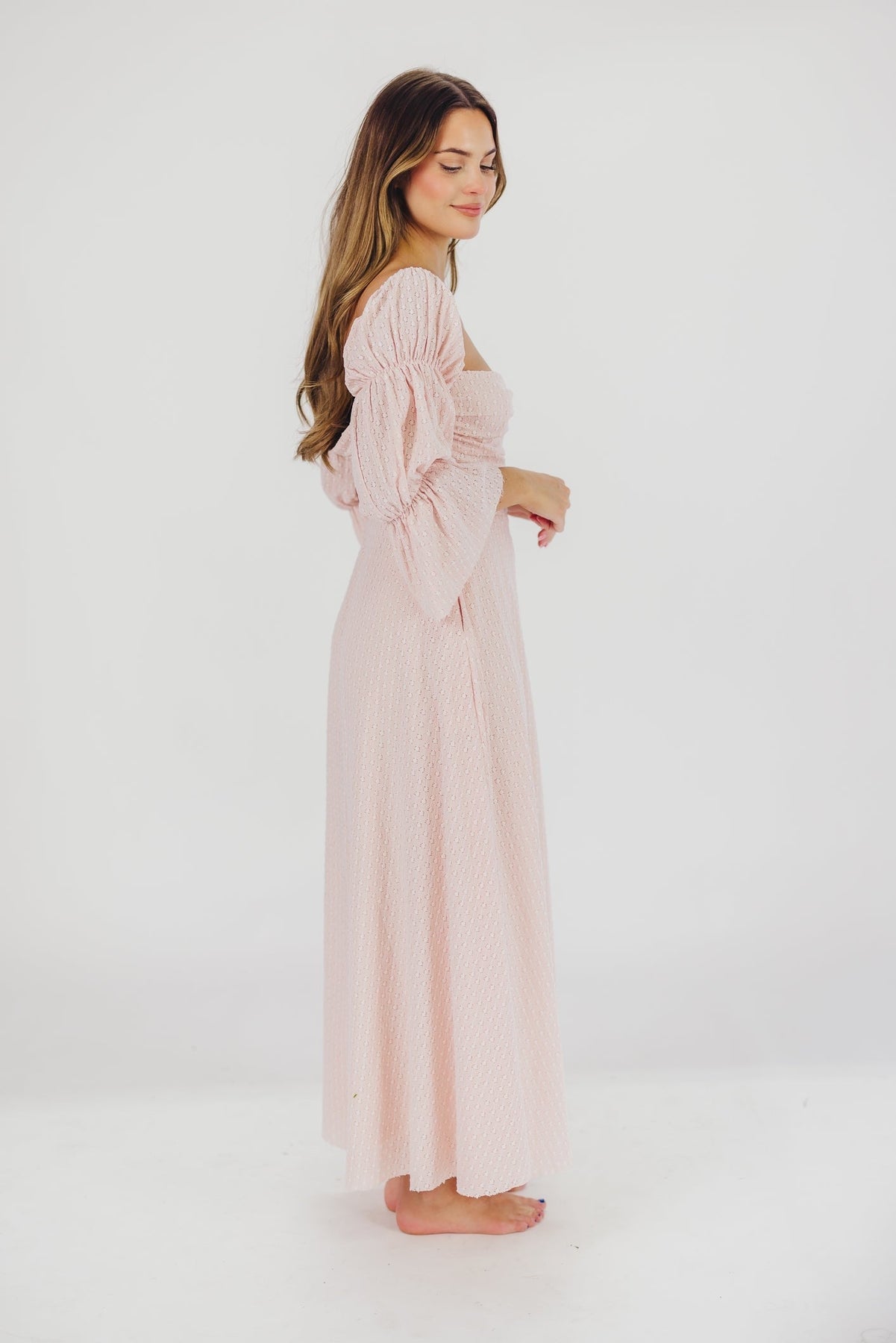 Corrine - langes Kleid mit rüschenärmeln und taschen - ballerina-pink - stoßfest