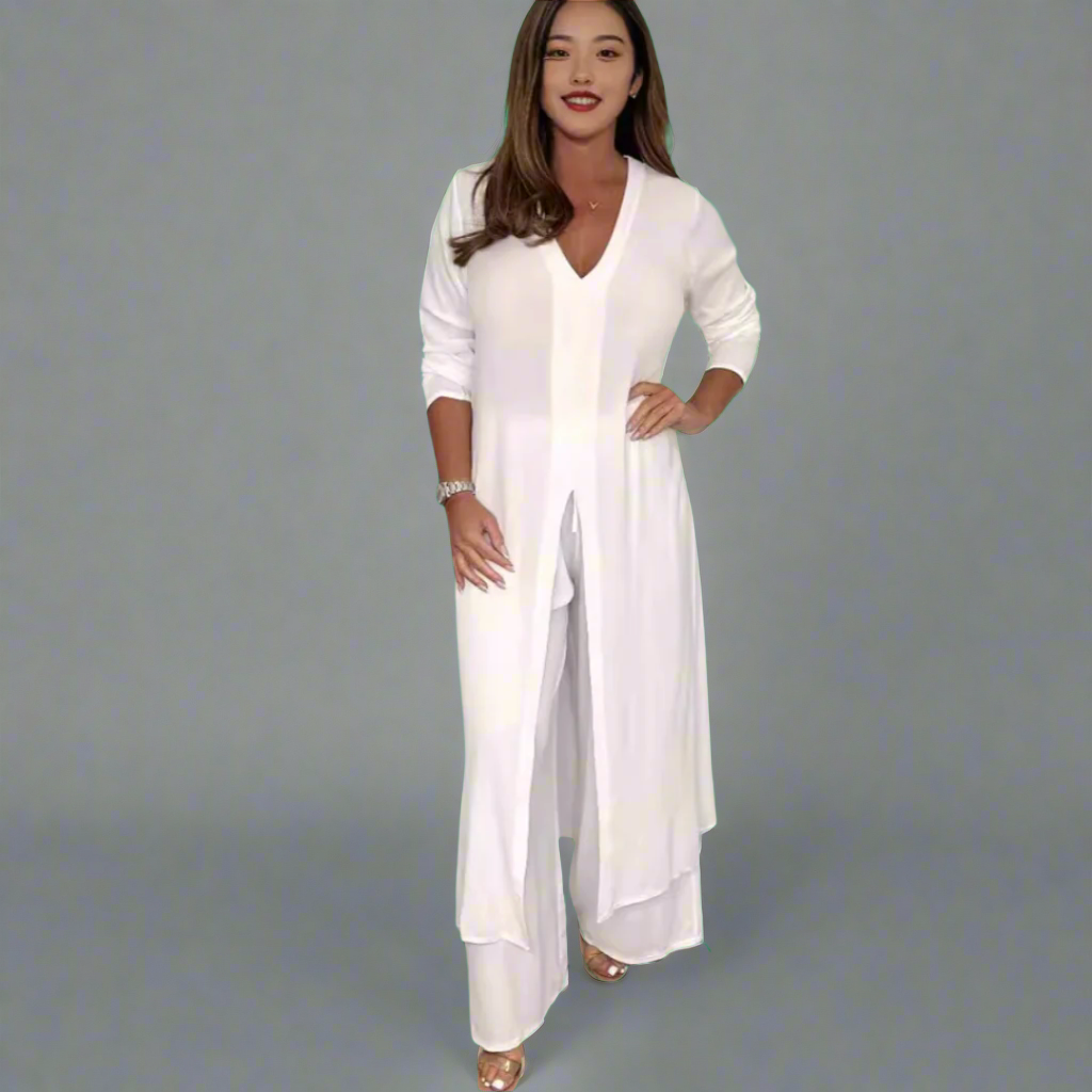 Erleben Sie höchsten Komfort und stilvolle Eleganz mit unserem Cyrhildis Set, perfekt für jeden Anlass. Dieses zweiteilige Set vereint stilvolle Freiheit und praktische Bequemlichkeit, ideal für lässige Tage und Sommerausflüge.