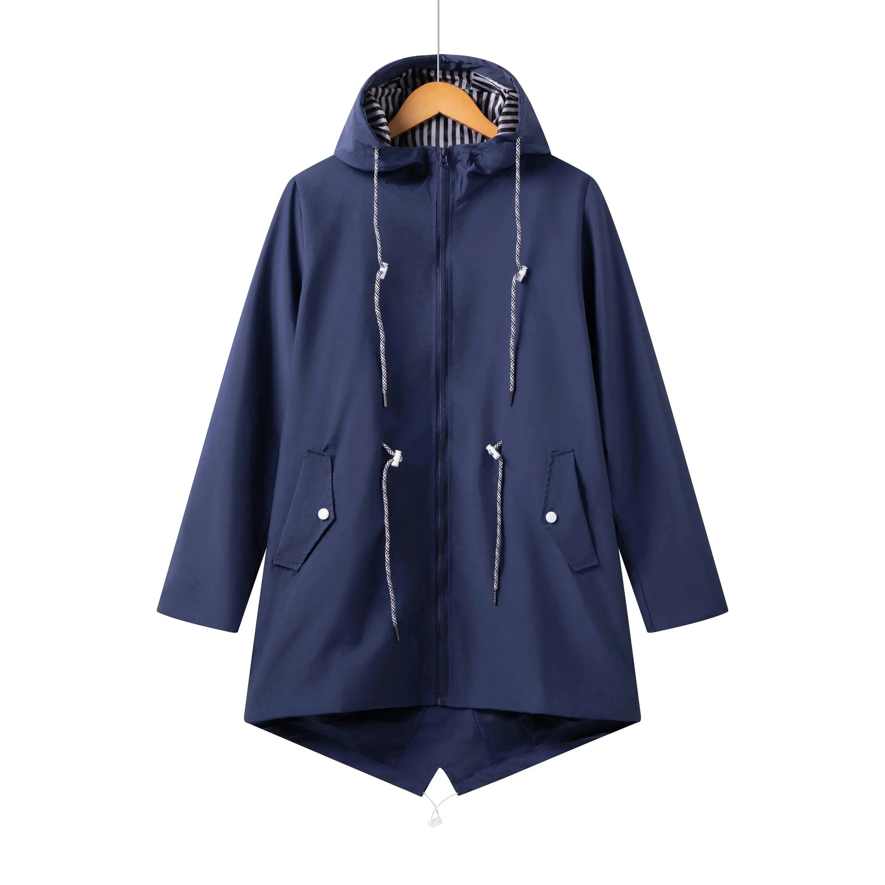 Damen Regenjacke mit Reißverschluss und Kordelzug