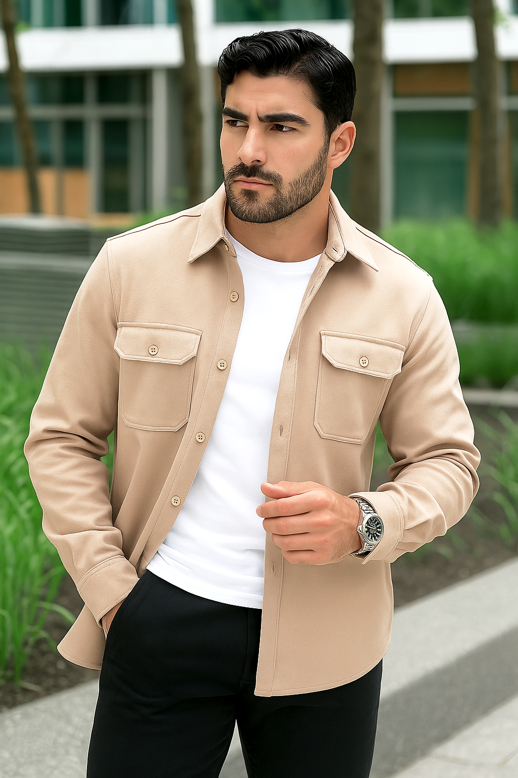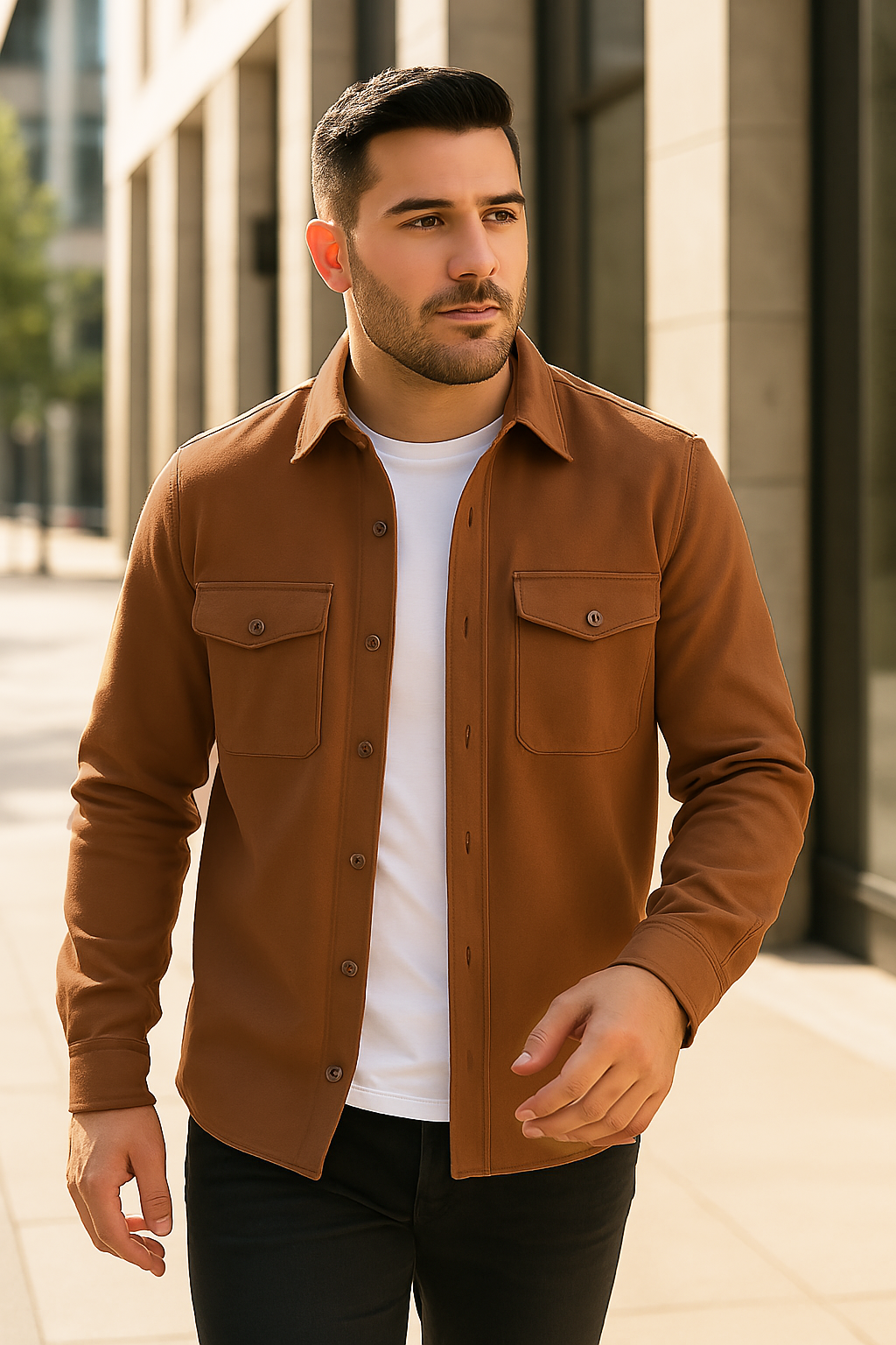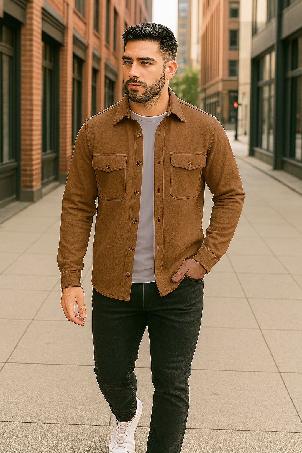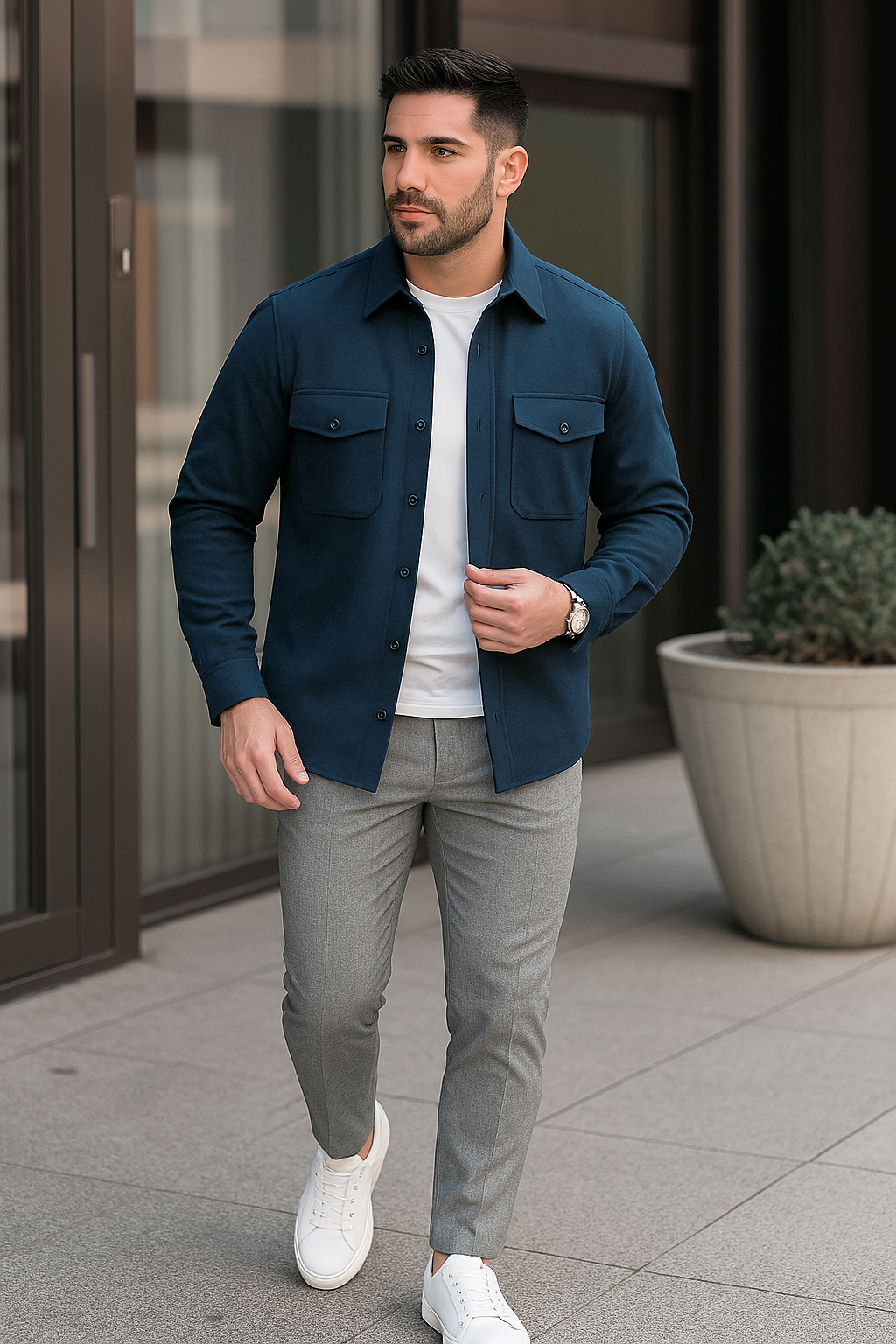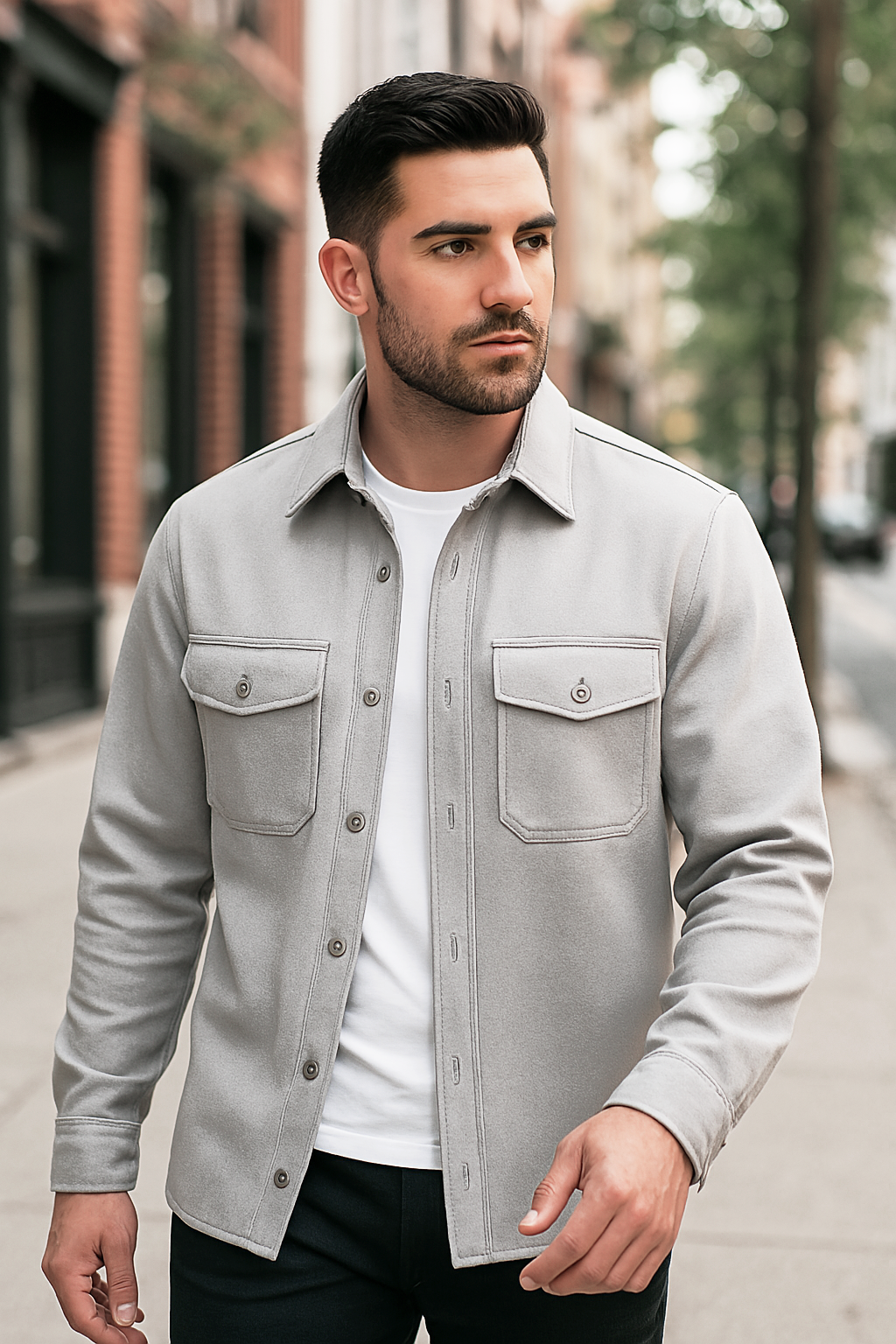 Dieses Herren Overshirt vereint klassische Eleganz mit funktionalem Komfort und ist der ideale Begleiter für kühlere Tage. Gefertigt aus hochwertigem, ultraweichem und dehnbarem Thermostoff, bietet es angenehme Wärme und Bewegungsfreiheit zugleich. Mit seinem zeitlosen Design und den praktischen Details lässt sich das Overshirt vielseitig kombinieren – ob als leichte Jacke über einem T-Shirt oder als wärmende Zwischenschicht unter einem Mantel. Damit ergänzt es jede Herbst- und Wintergarderobe um ein stilvolles und praktisches Highlight.