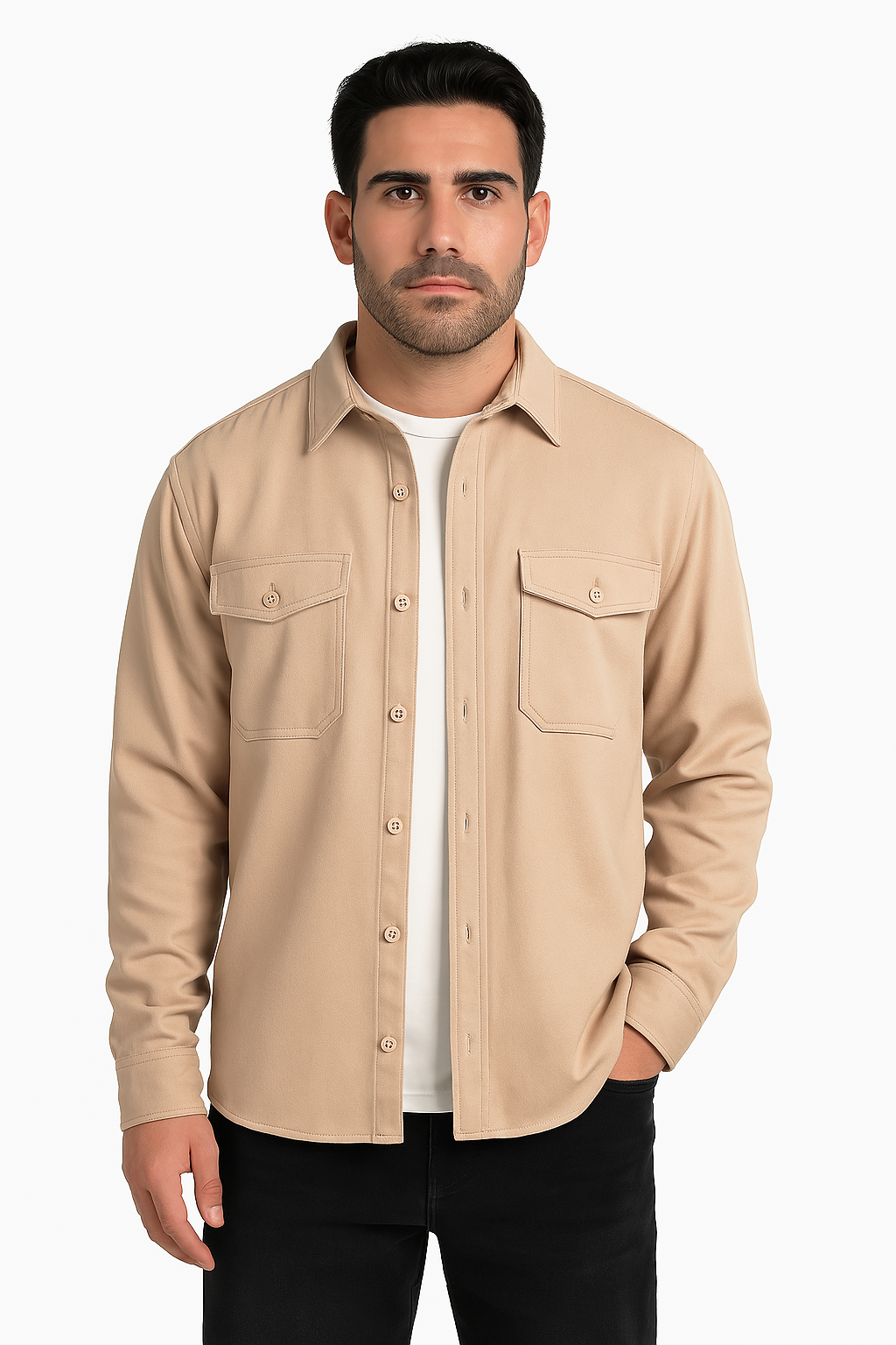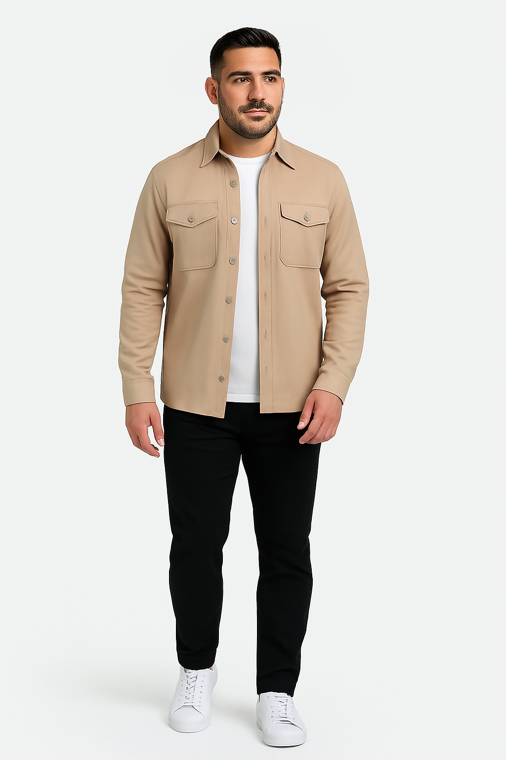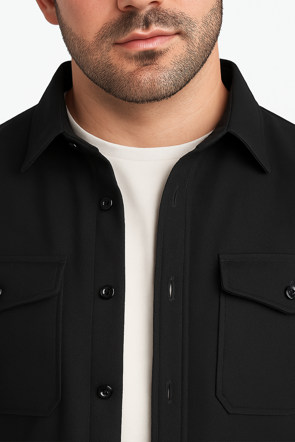 • Klassisches Design mit Funktion: Mit Knopfleiste, Umlegekragen und zwei Brusttaschen mit Patte bleibt dieses Overshirt modisch aktuell und gleichzeitig praktisch im Alltag.