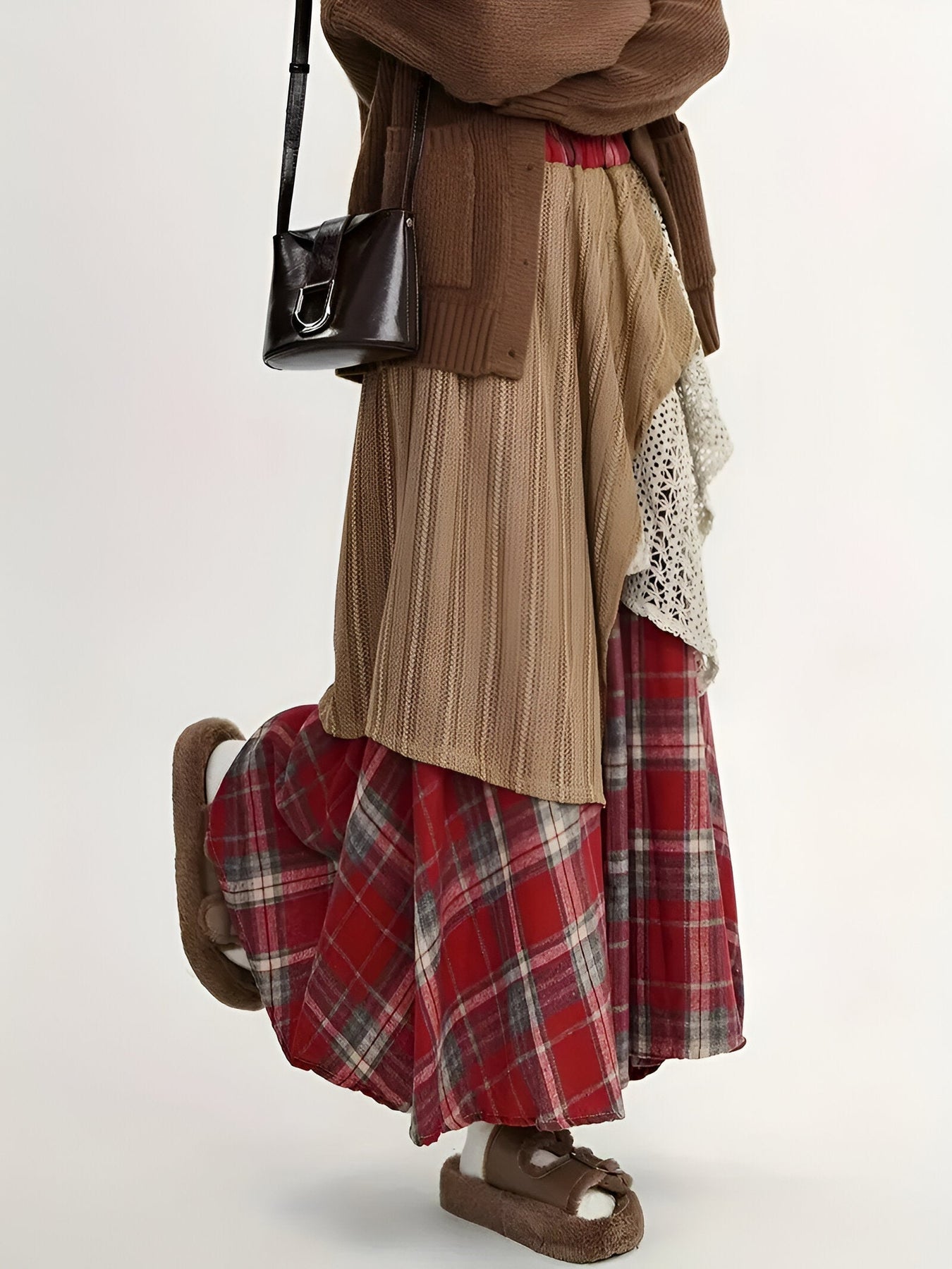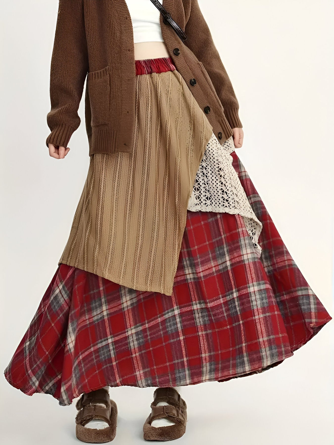 Stell dir vor, du gehst in einem Rock, der Komfort und Stil perfekt vereint. Mit seinem asymmetrischen Schnitt und dem auffälligen, farbblockierten Tribal-Karo-Muster sticht dieser Rock garantiert hervor. Ob für einen lässigen Look oder etwas Schickeres, er ist ein vielseitiges Kleidungsstück, das jedes Outfit aufwertet.