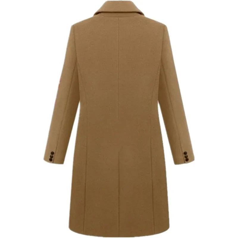 Eleganter Damenmantel mit doppelreihiger Knopfleiste und langem Schnitt