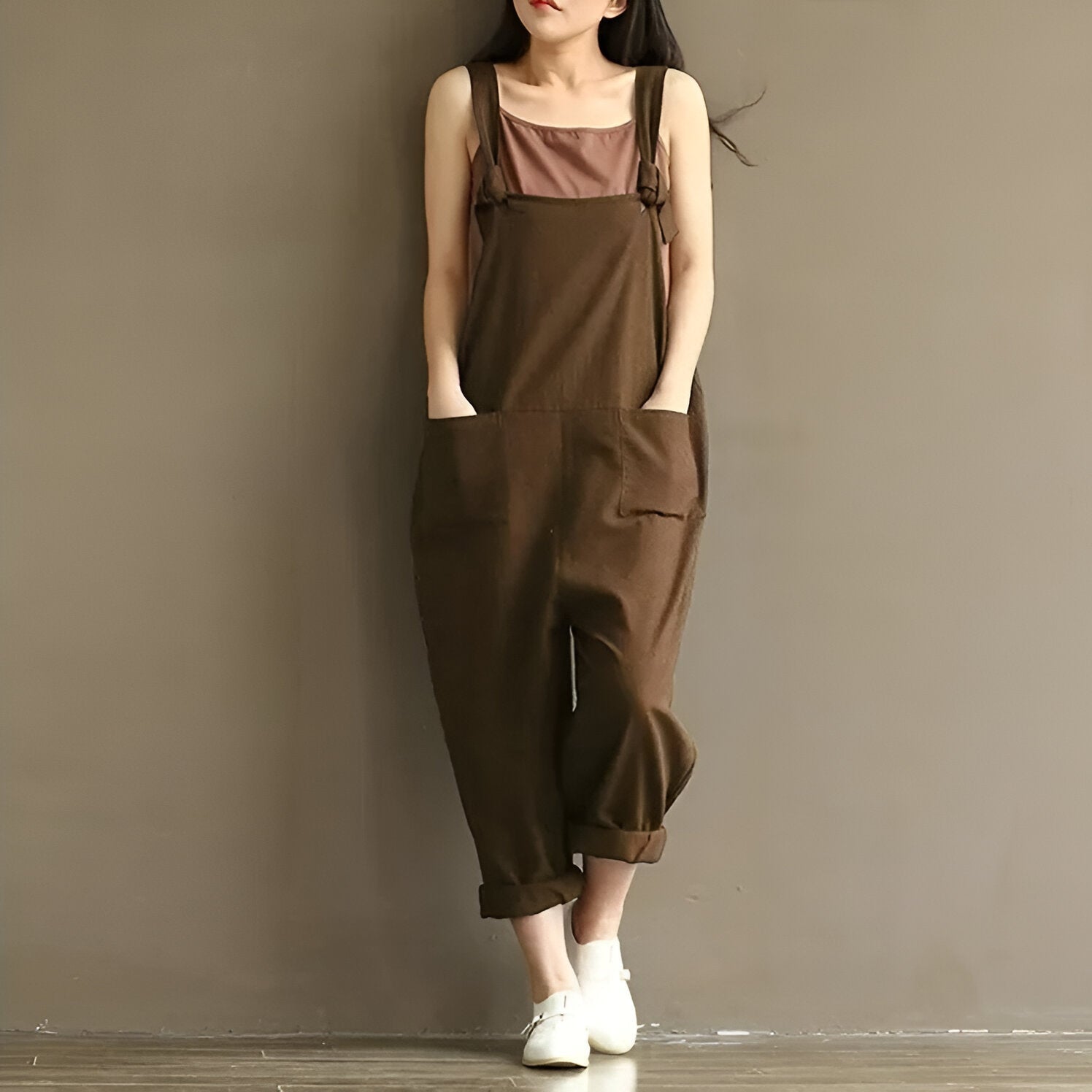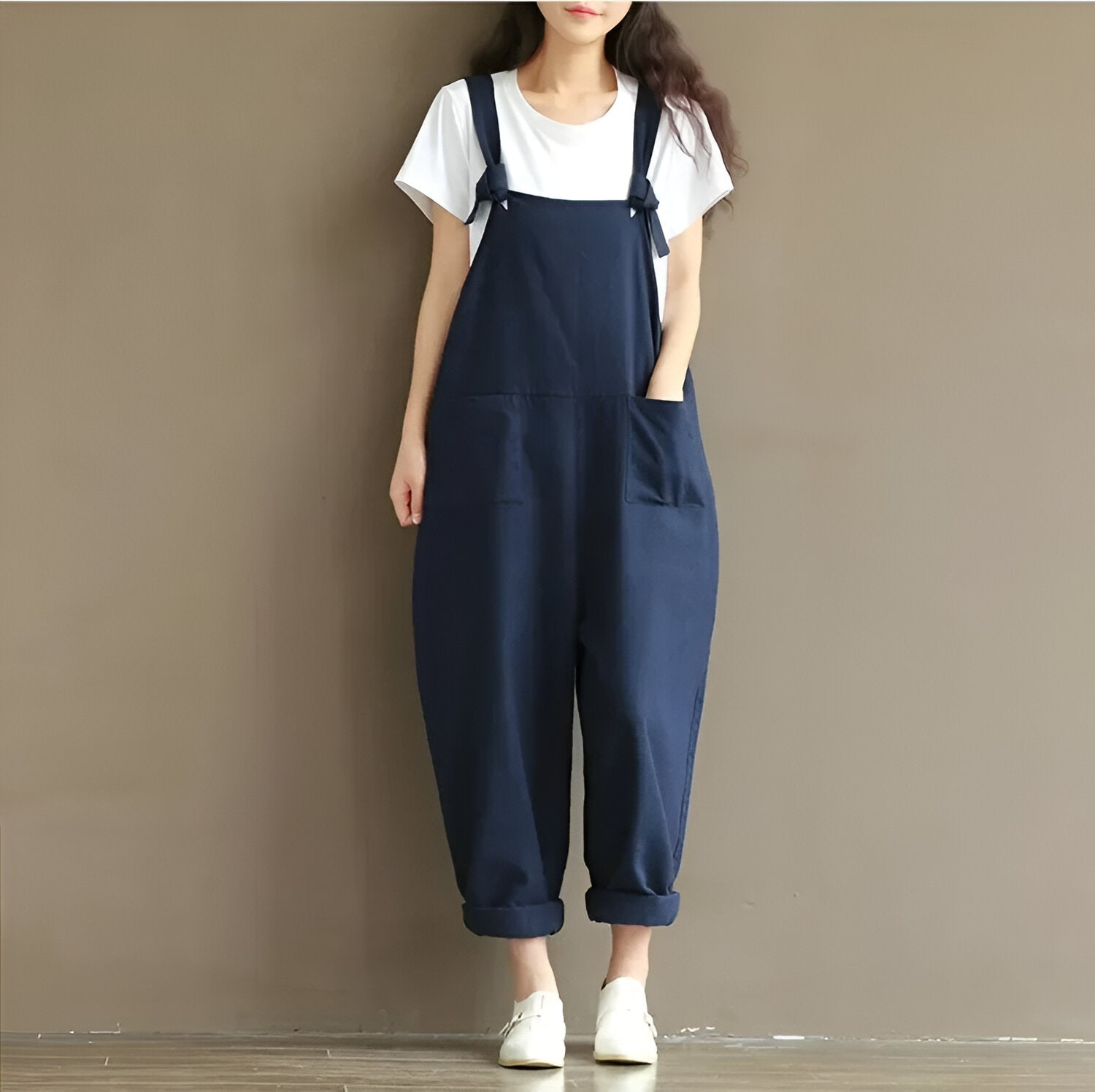 Stell dir vor, du schlüpfst in einen Overall, der genauso bequem wie stylish ist – designt, um dir den ganzen Tag über ein Gefühl von Freiheit und Entspannung zu geben. Dieser schlichte, einfarbige Träger-Overall bietet mühelose Eleganz für jede Gelegenheit, ob du zu Hause entspannst oder unterwegs bist. Mit einem lockeren, entspannten Schnitt und weichem Baumwollstoff ist er das perfekte Kleidungsstück für deinen Alltag.