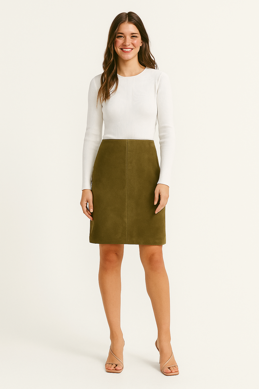 Verleihen Sie Ihrer Garderobe mehr Stil mit dem geraden Wildlederrock Ellen.