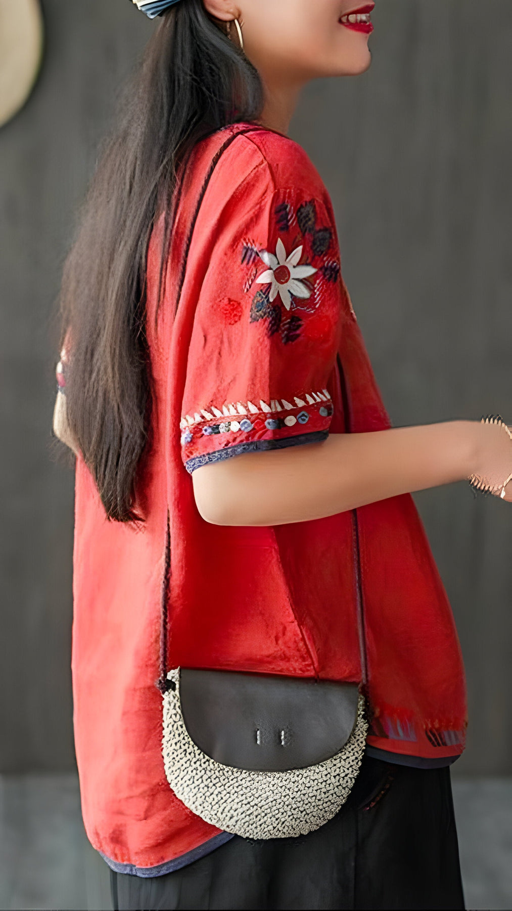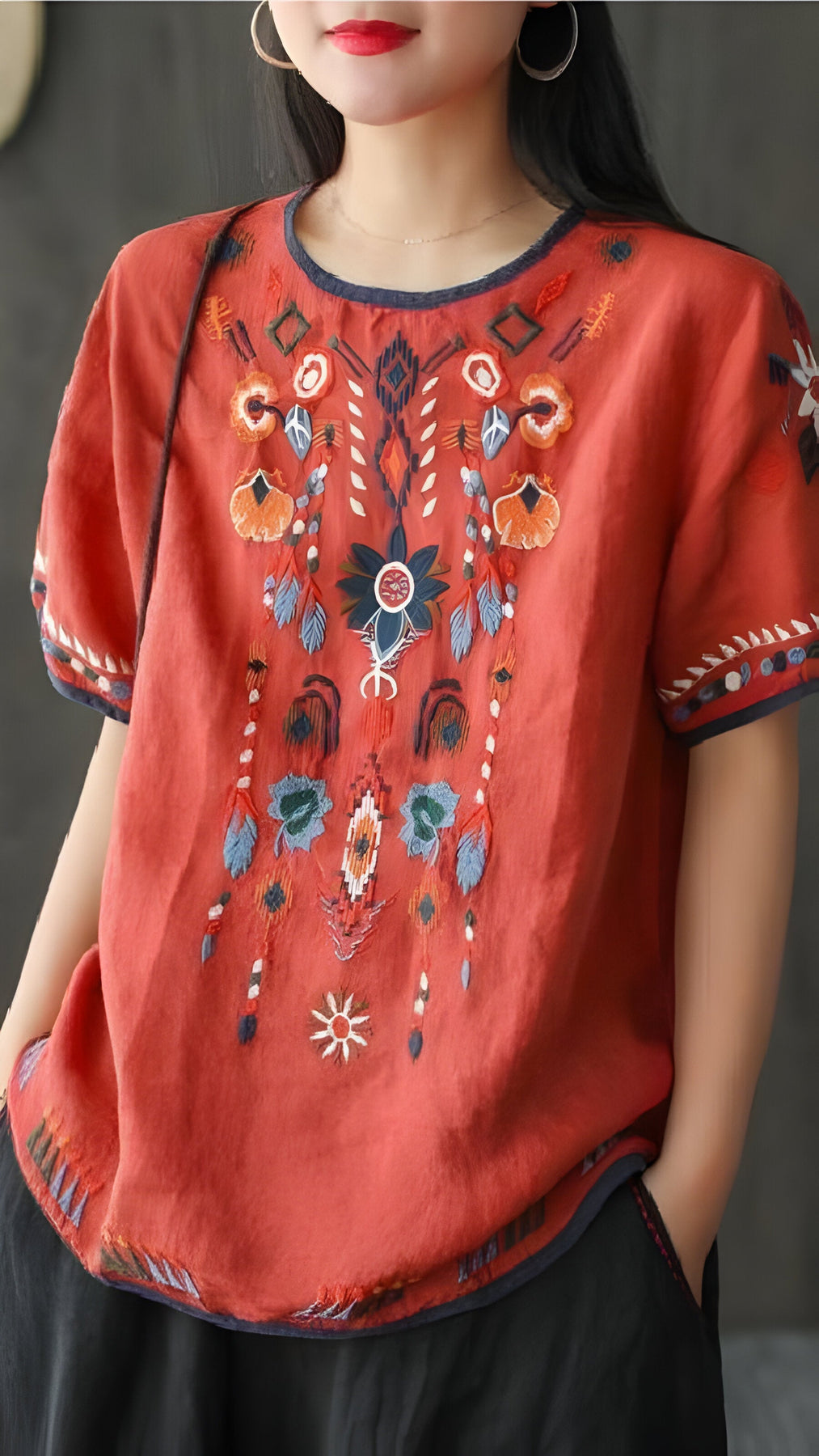 Feine Stickereien, ein luftiger Schnitt und mühelose Eleganz – diese Bluse ist für die moderne Frau gemacht, die Komfort und Raffinesse gleichermaßen schätzt. Ob beim entspannten Brunch oder zu einem besonderen Anlass, die kunstvollen Details und die lockere Silhouette sorgen für einen stilvollen Auftritt.