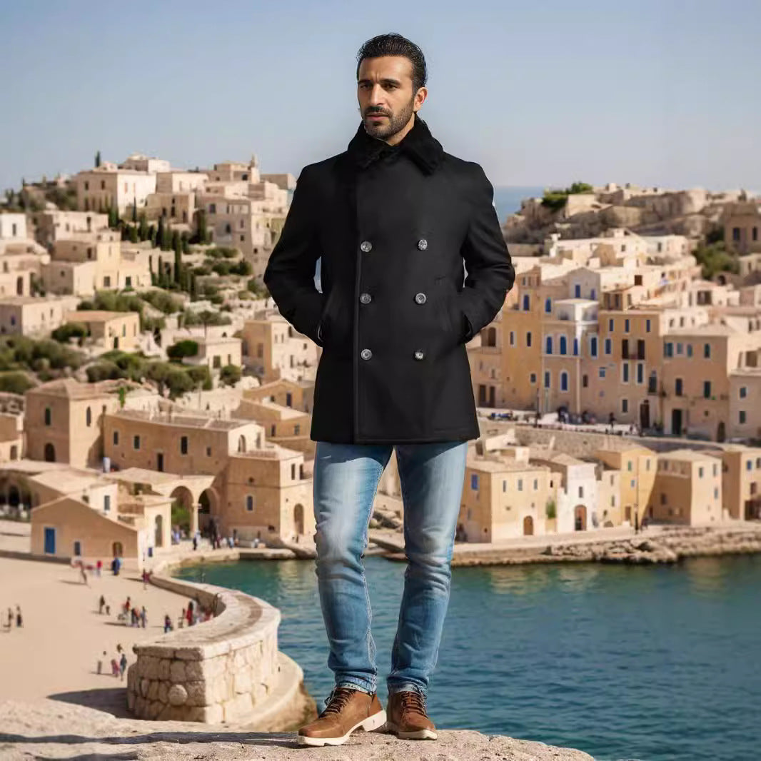 - Design: Das doppelte Knopfdesign und der auffällige Kragen verleihen der Jacke einen eleganten Look, der ideal für lässige und formelle Anlässe ist.