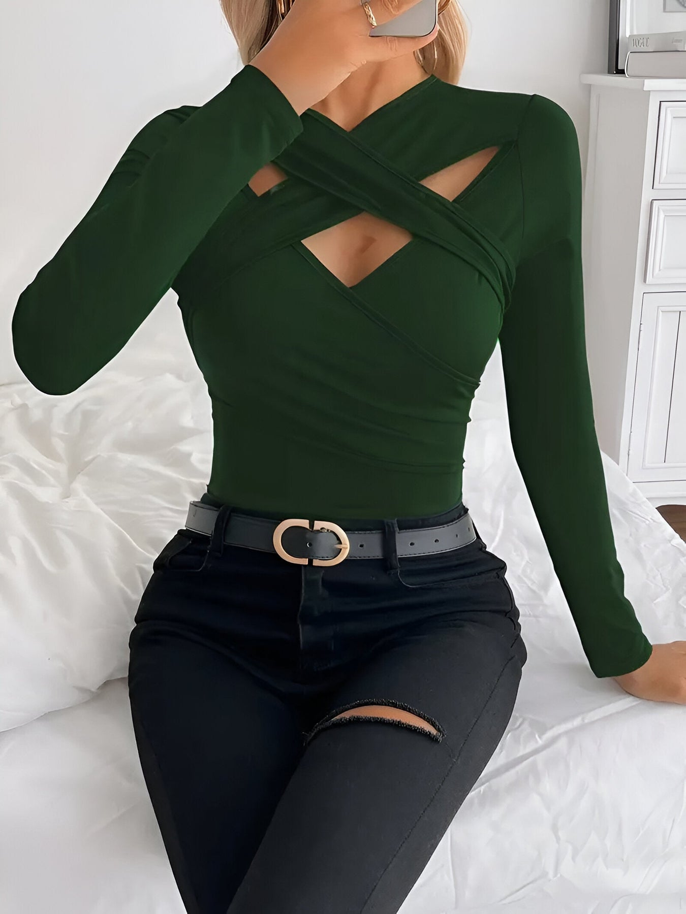 Hildegard | Elegantes V-Ausschnitt Langarm-Top