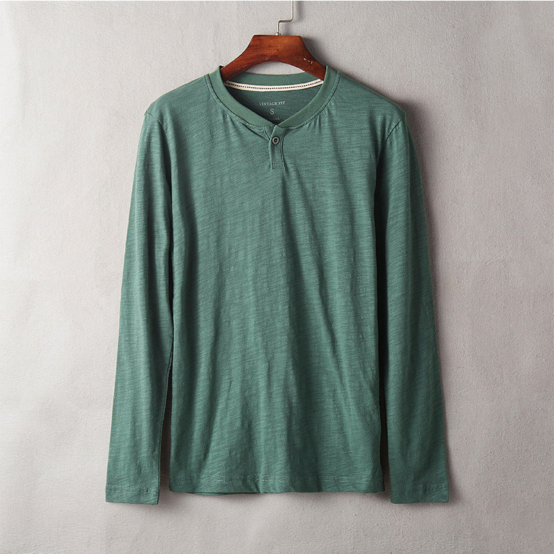 - Minimalistisches Design: Der Henley-Ausschnitt mit einem einzelnen Knopf sorgt für einen dezenten, aber dennoch markanten Look, der sich vielseitig kombinieren lässt.