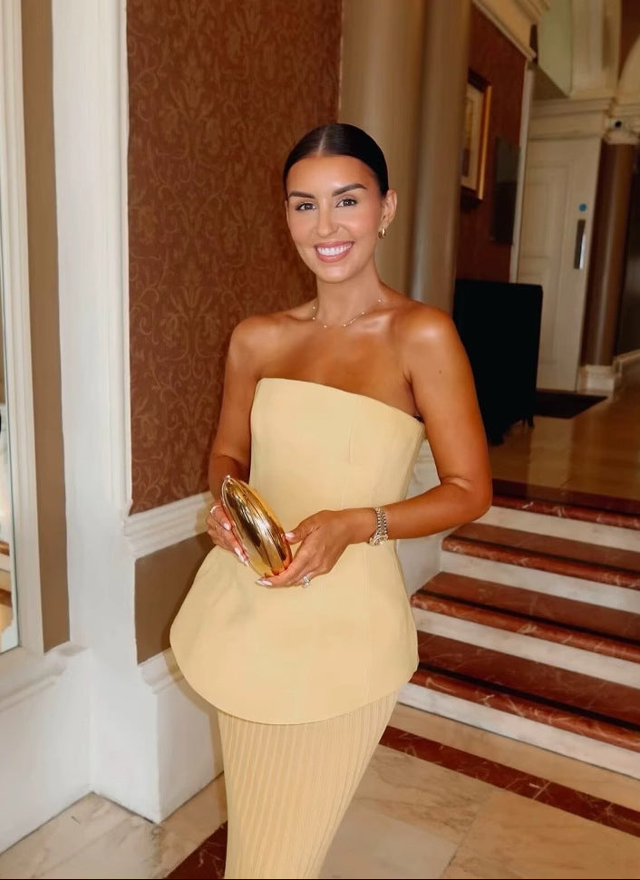 Ina | Trägerloses Plissiertes Schößchenkleid