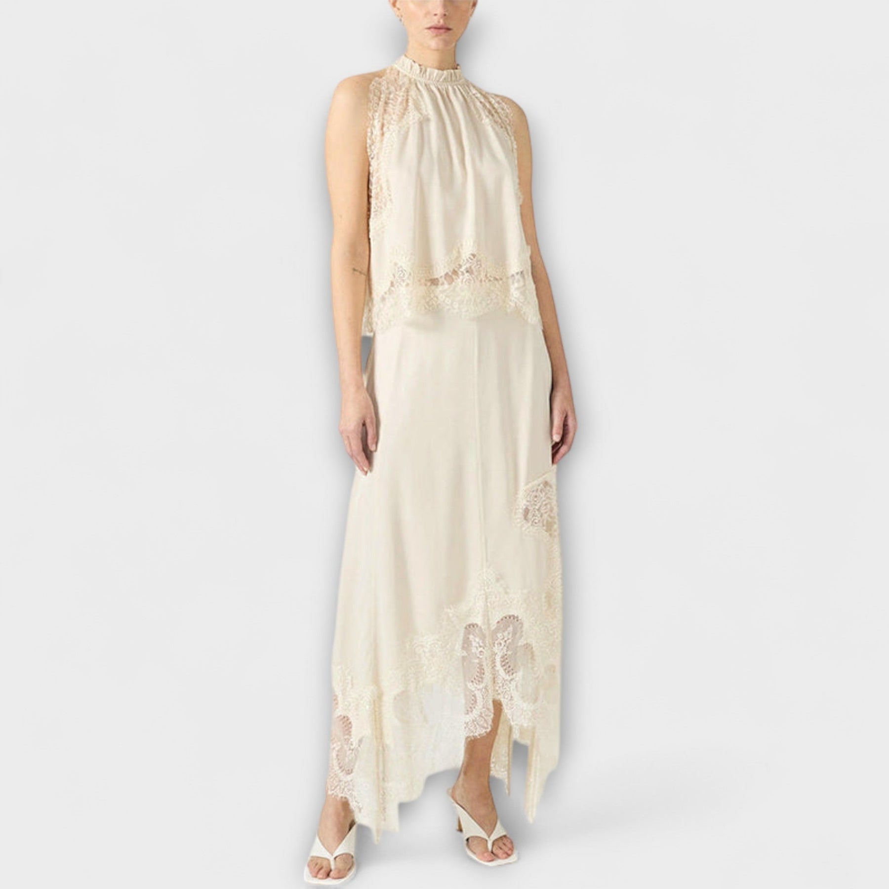 Kaia - Satinbluse mit Spitzenbesatz und plissiertem Ausschnitt im Set