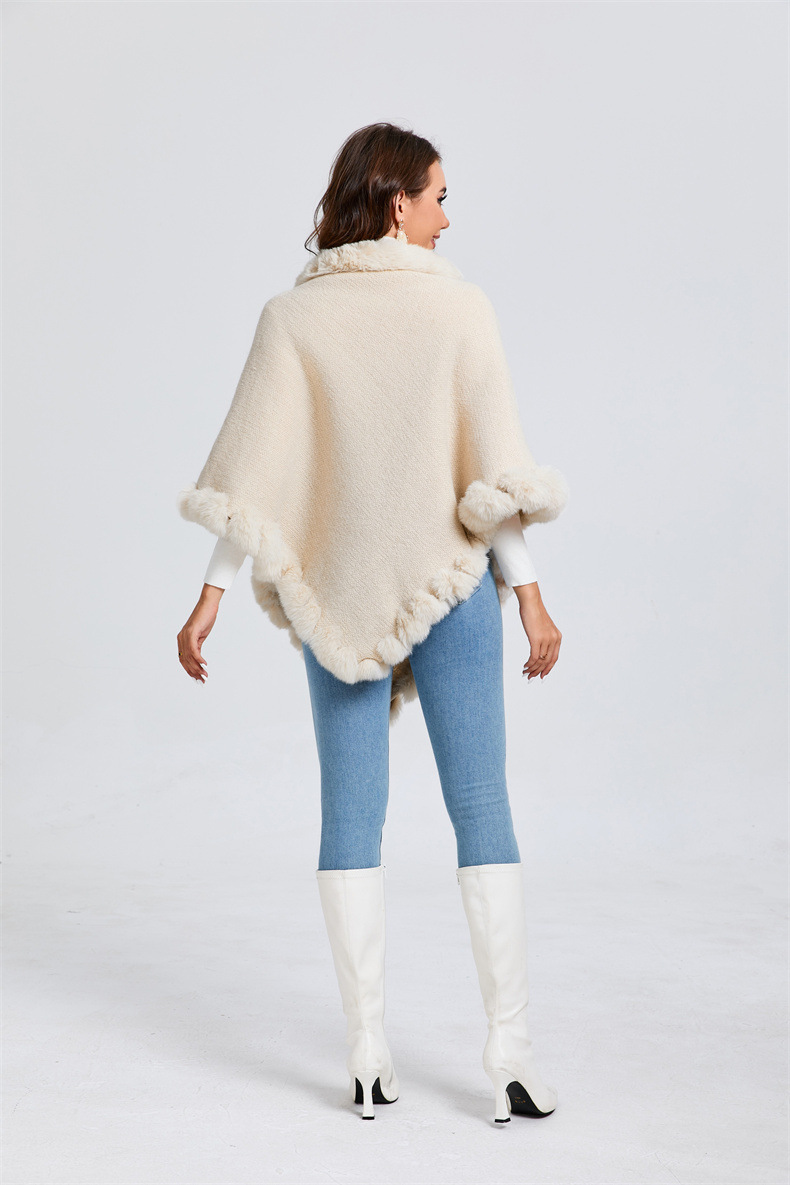 • Luxuriöses Design: Das kunstvolle Muster und der elegante Pelzkragen machen diesen Schal zu einem stilvollen Statement.