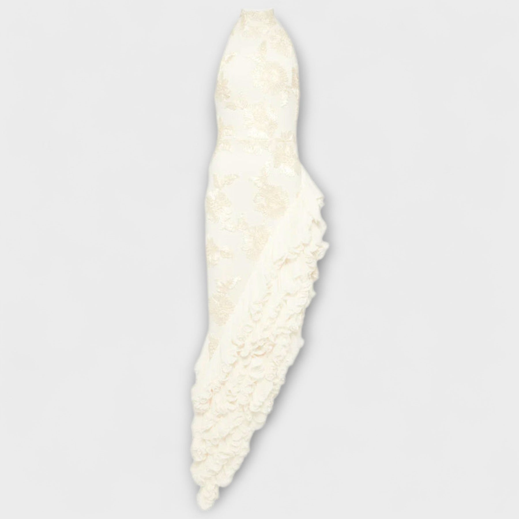 Genießen Sie ätherische Eleganz mit unserem Maxikleid mit floralen Applikationen, einer atemberaubenden Mischung aus Romantik und Anmut. Dieses bezaubernde Stück verfügt über filigrane 3D-Blumenapplikationen, die über eine fließende, bodenlange Silhouette blühen.