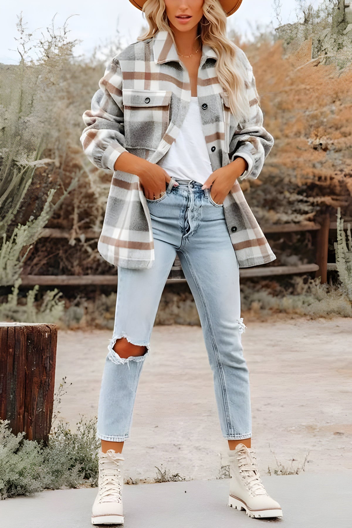 Verlasse das Haus stilvoll mit dieser schicken karierten Jacke, die Mode und Funktionalität perfekt kombiniert.