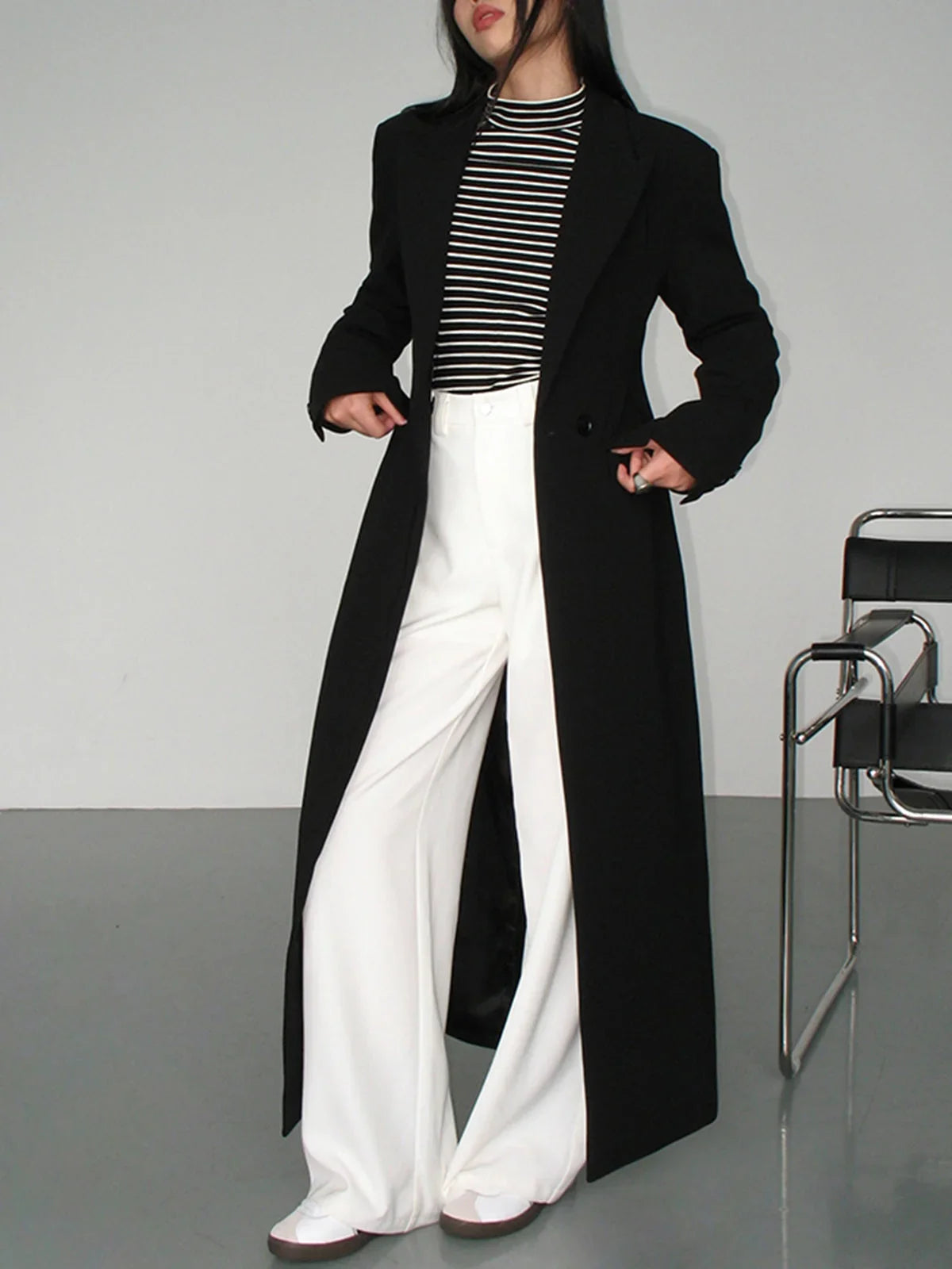 Entdecken Sie den perfekten Begleiter für kühle Tage – unser langer, schwarzer Damenmantel. Er vereint Stil mit Funktionalität und ist ideal für modebewusste Frauen.