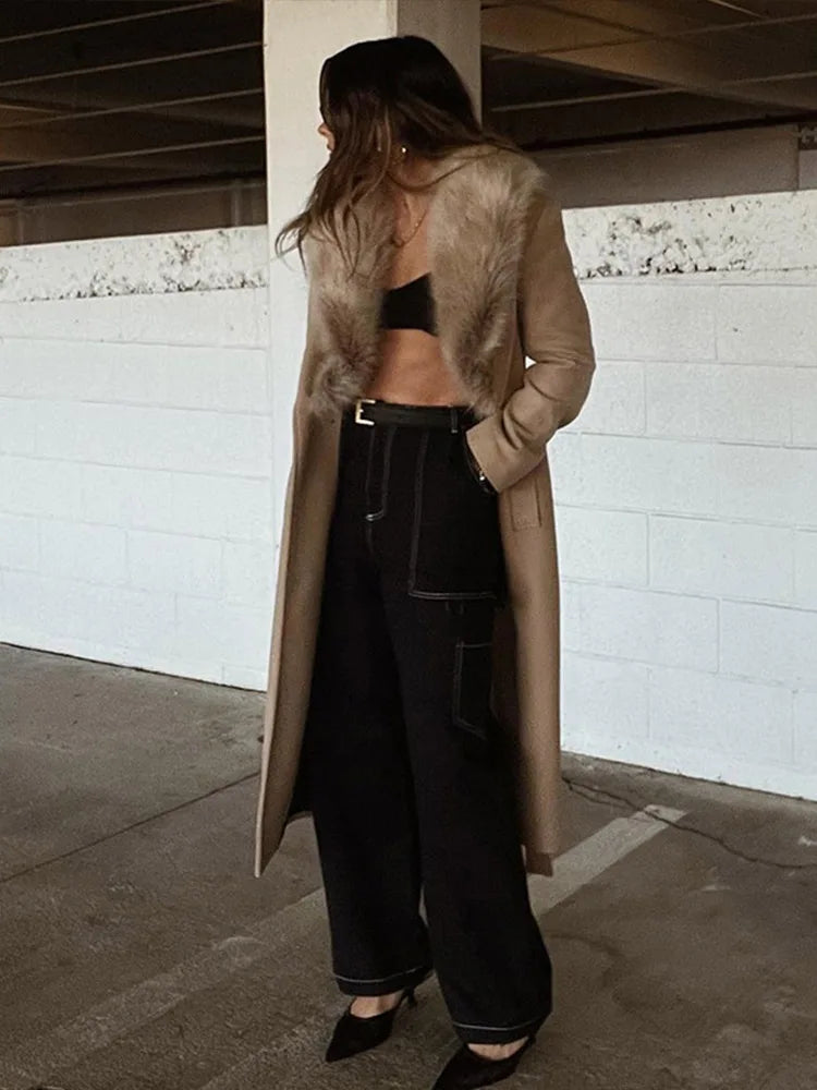 • Kunstpelzkragen: Verleiht dem Look eine luxuriöse Note.