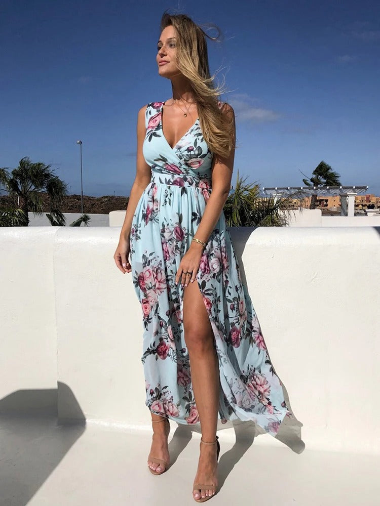Maxikleid | Blumenmuster & Seitenschlitz | Luftig & Feminin