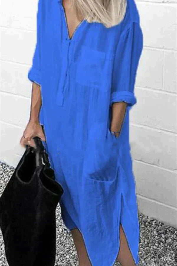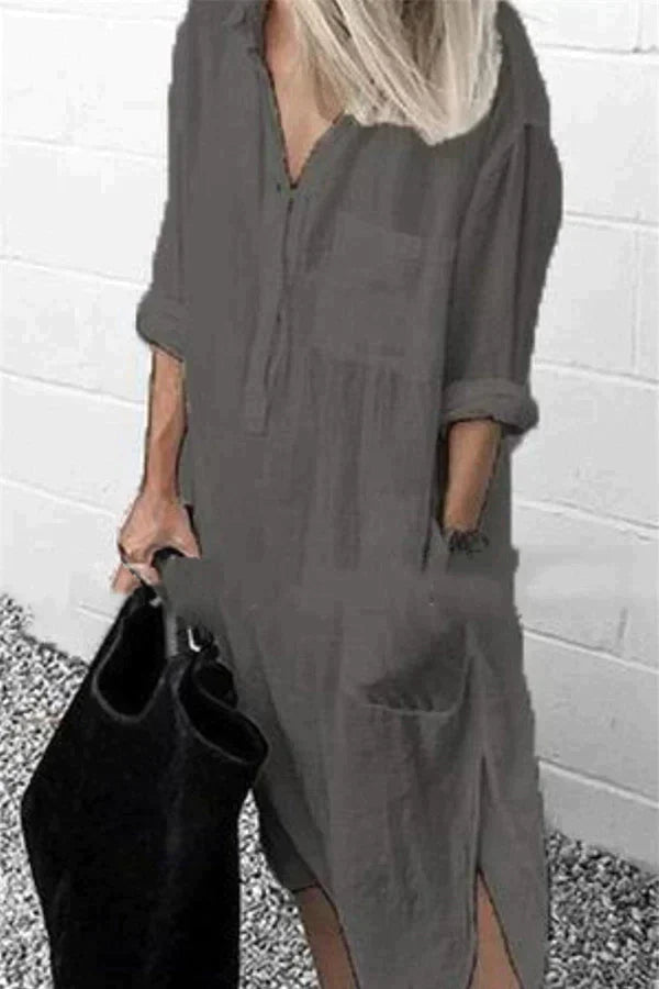 Nancy - Elegantes einfarbiges Hemdkleid mit Schlitz