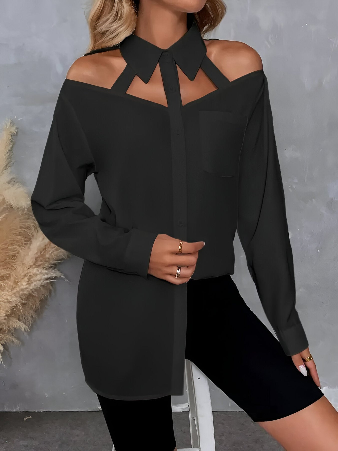 Nayra ist ein stylisches Hemd mit klassischem Knopfverschluss. Es hat ein zeitloses Design und eignet sich sowohl für ungezwungene als auch für formelle Anlässe.