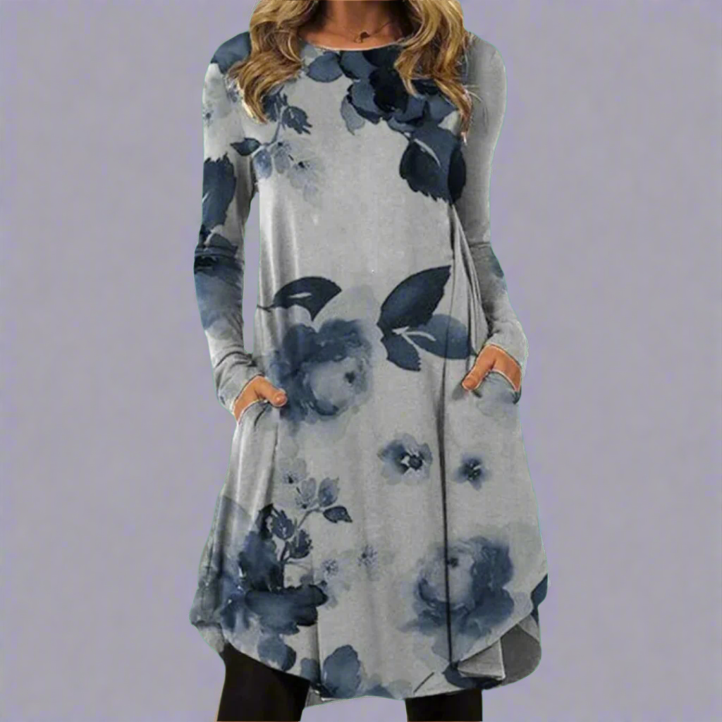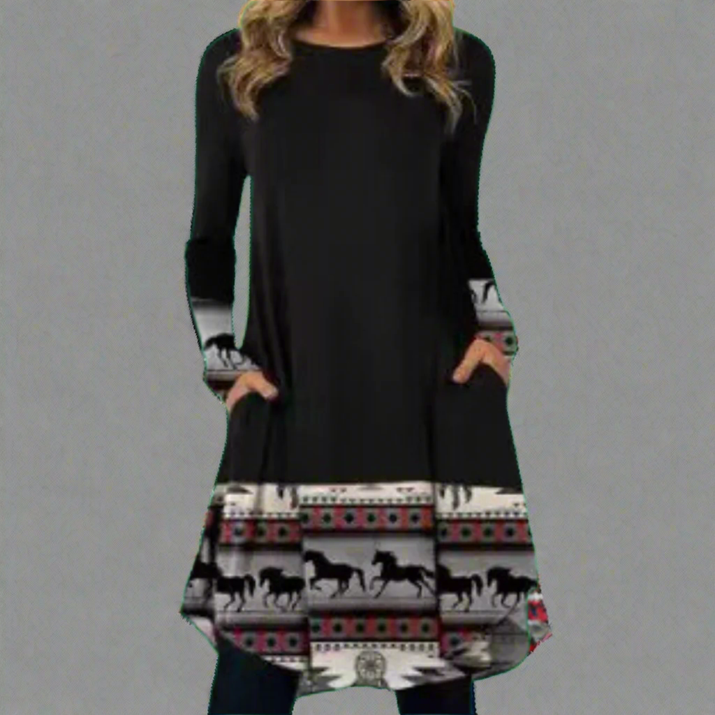 Ysolde | Modisches Kleid mit bedrucktem Bund aus Premium-Stoff