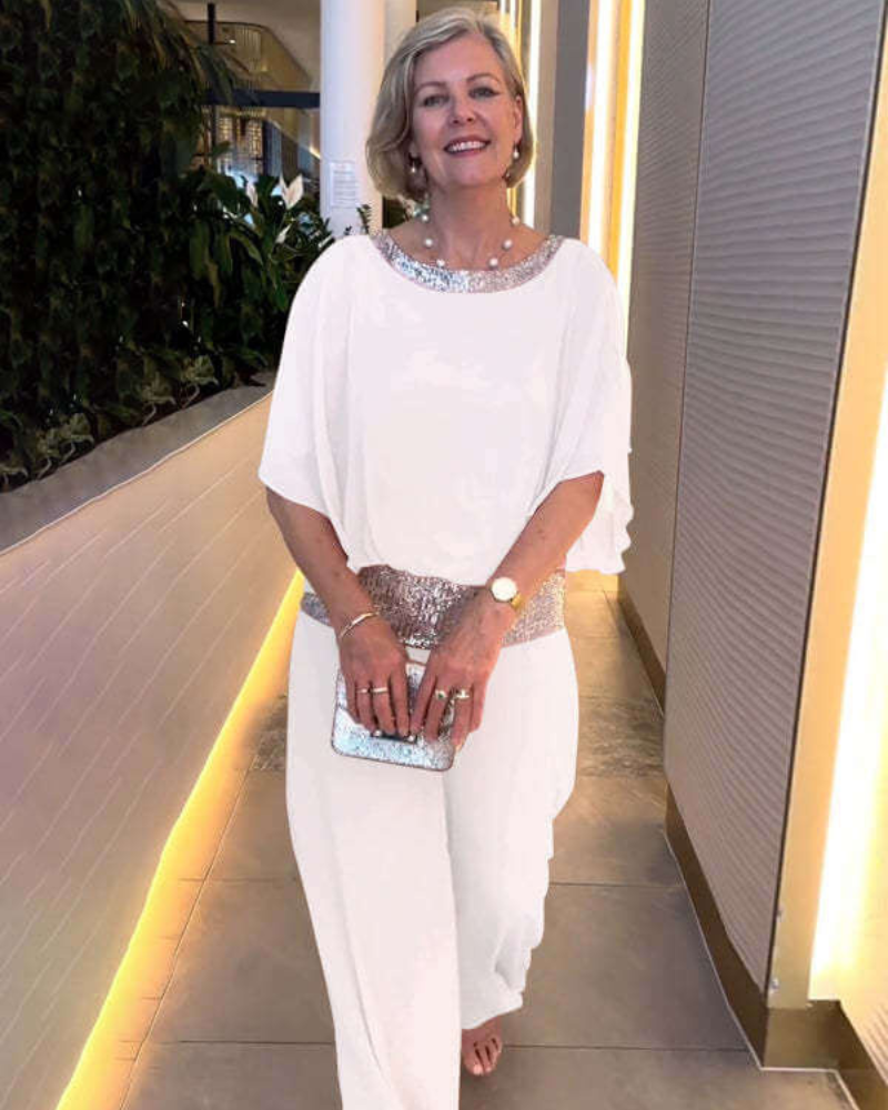 Schickes und stilvolles Design: Ein elegantes zweiteiliges Set, das jeder Veranstaltung oder jedem Ausflug einen Hauch von Raffinesse verleiht.